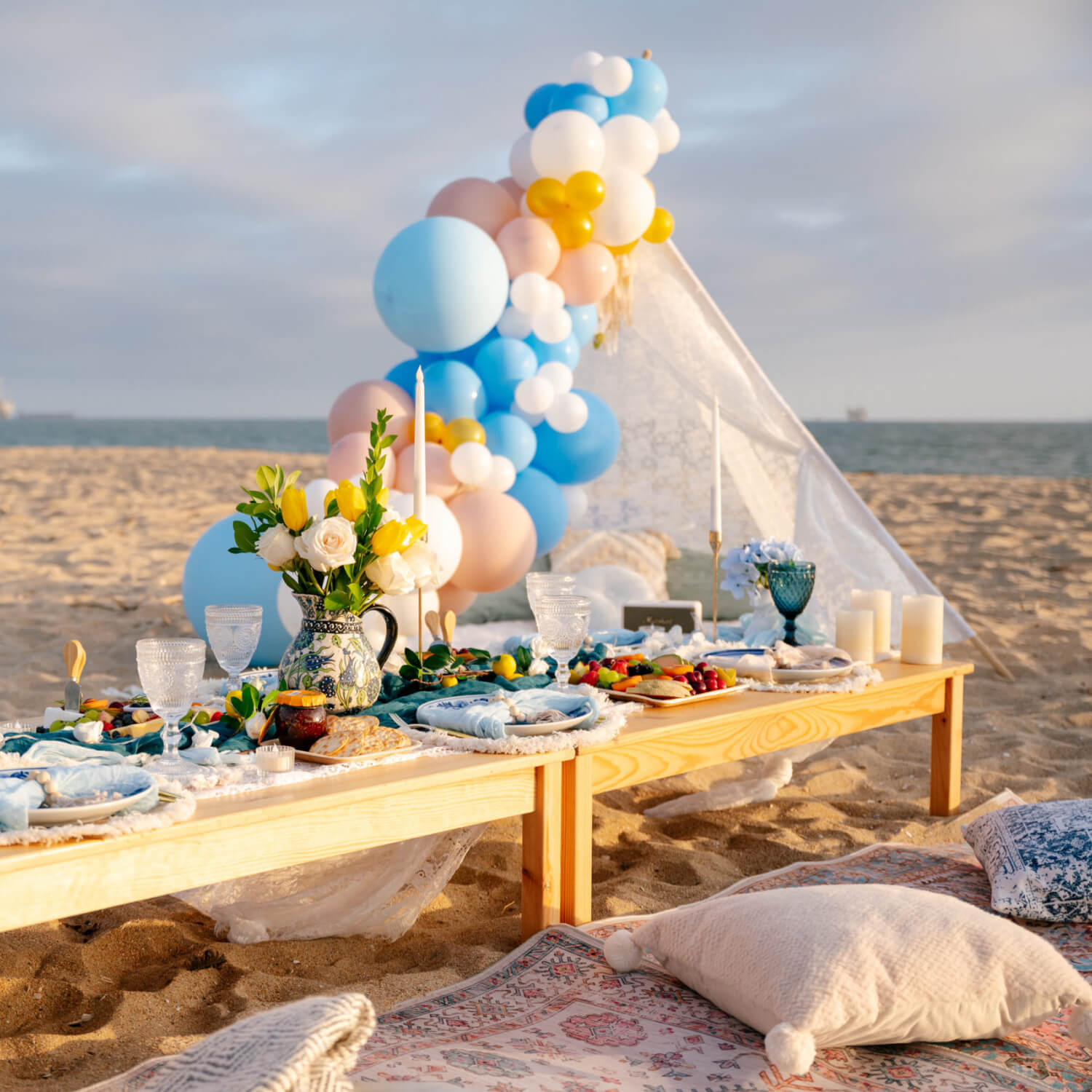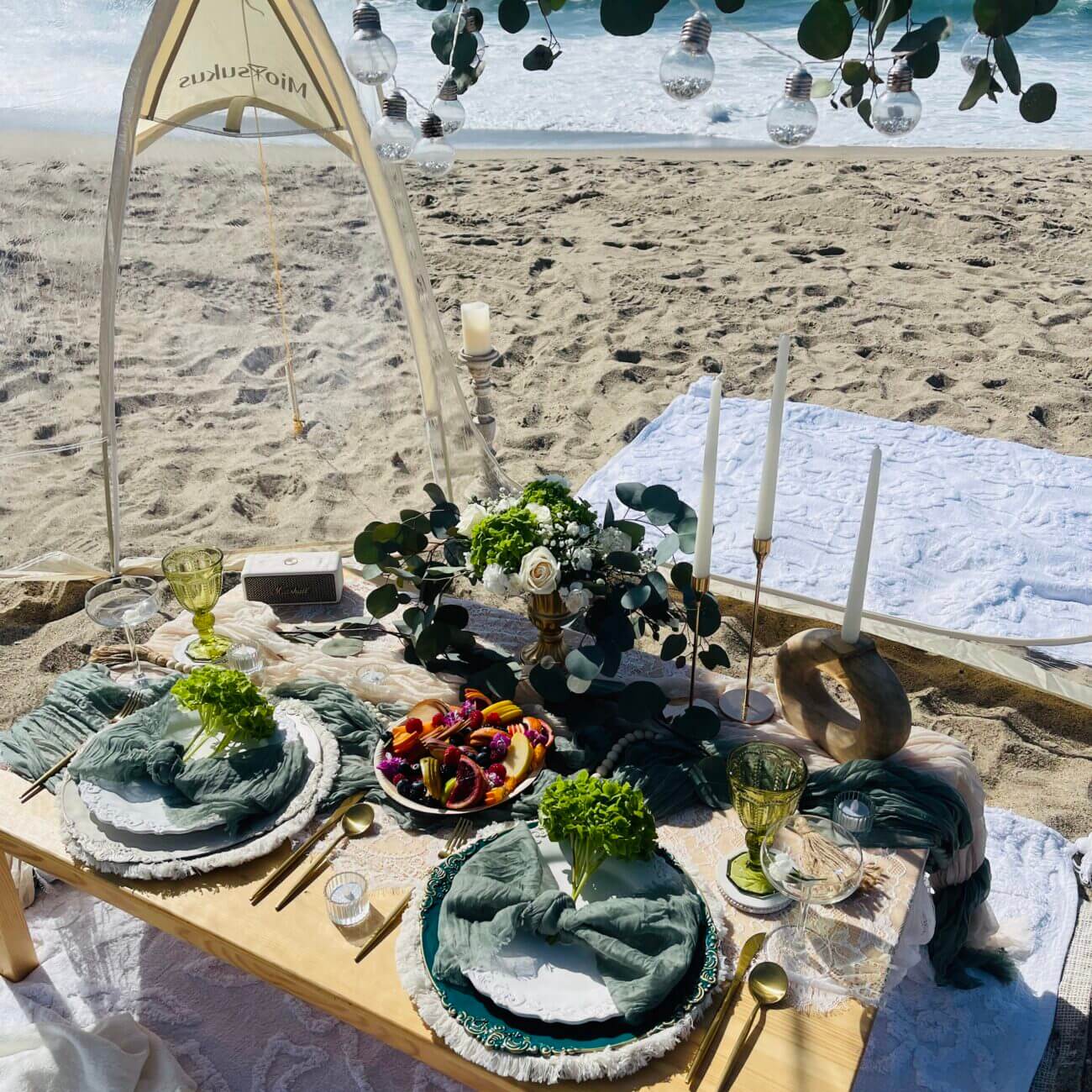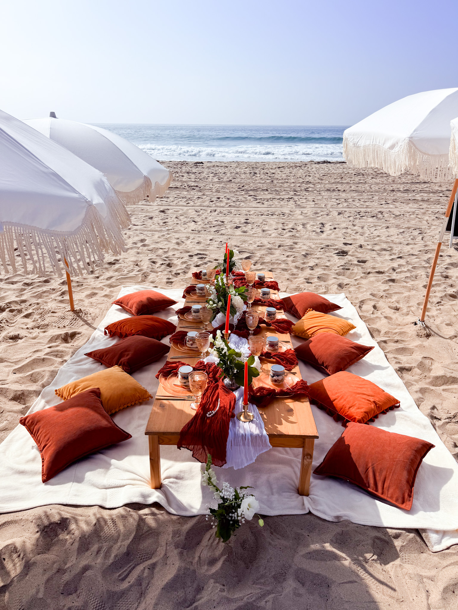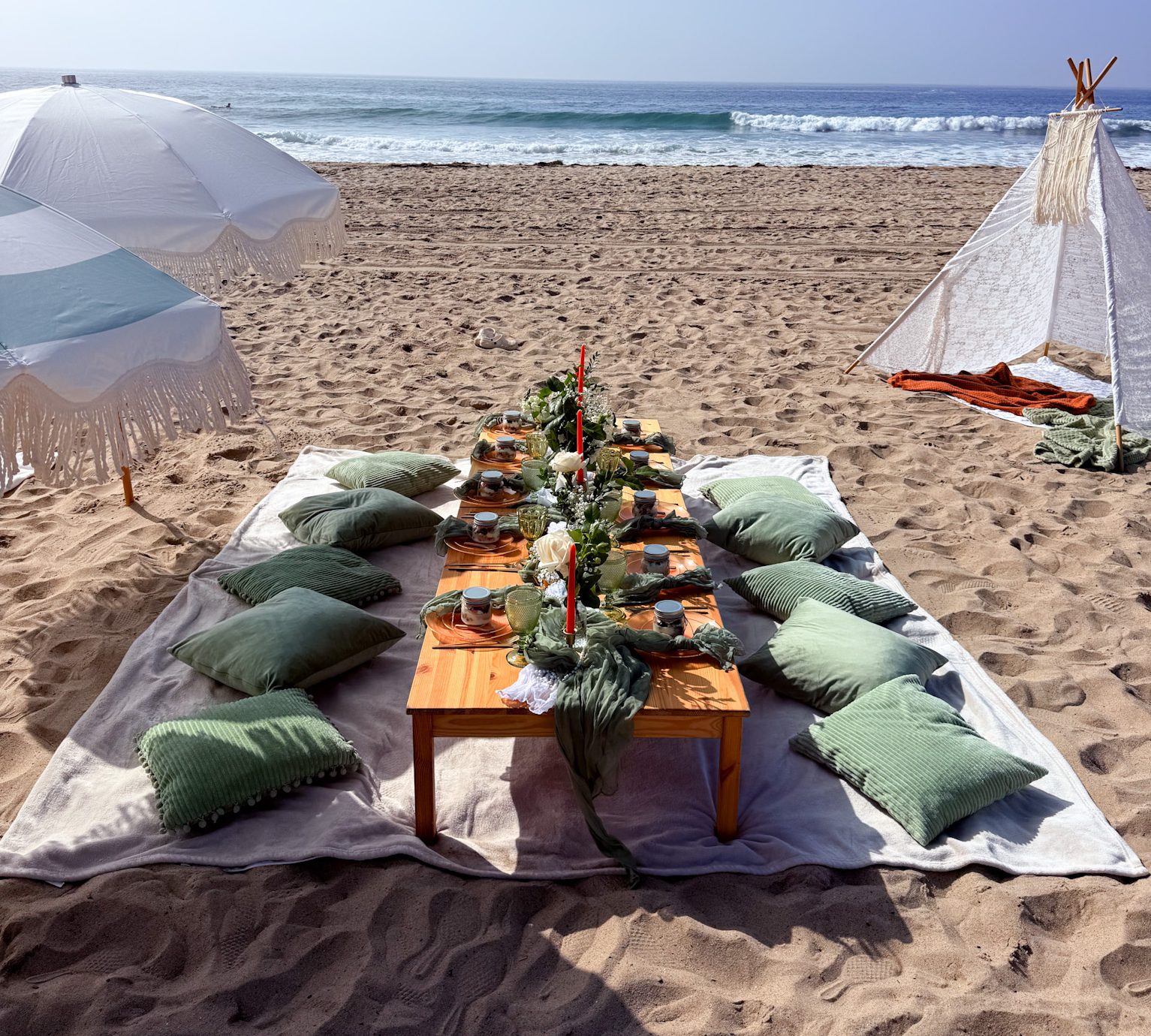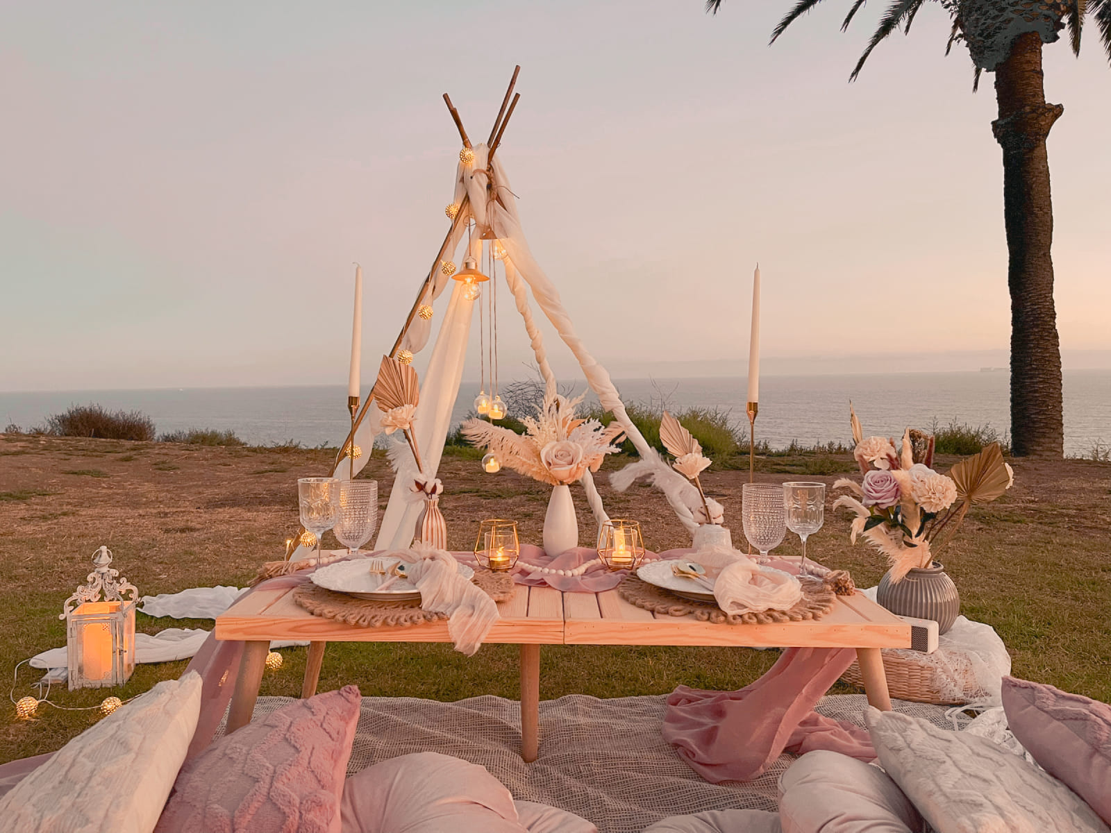 Every event, from bohemian beach picnics to elegant setups overlooking the city’s skyline, is crafted with meticulous detail. Each story is different, yet unified by our unwavering love and passion for creating unforgettable moments. As a premier pop-up luxury picnic company in Los Angeles, we pride ourselves on blending sophistication and scenic beauty, ensuring each client an exceptional, personalized experience.